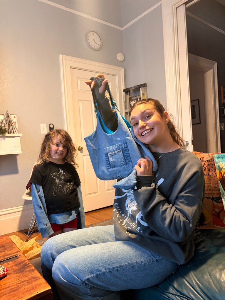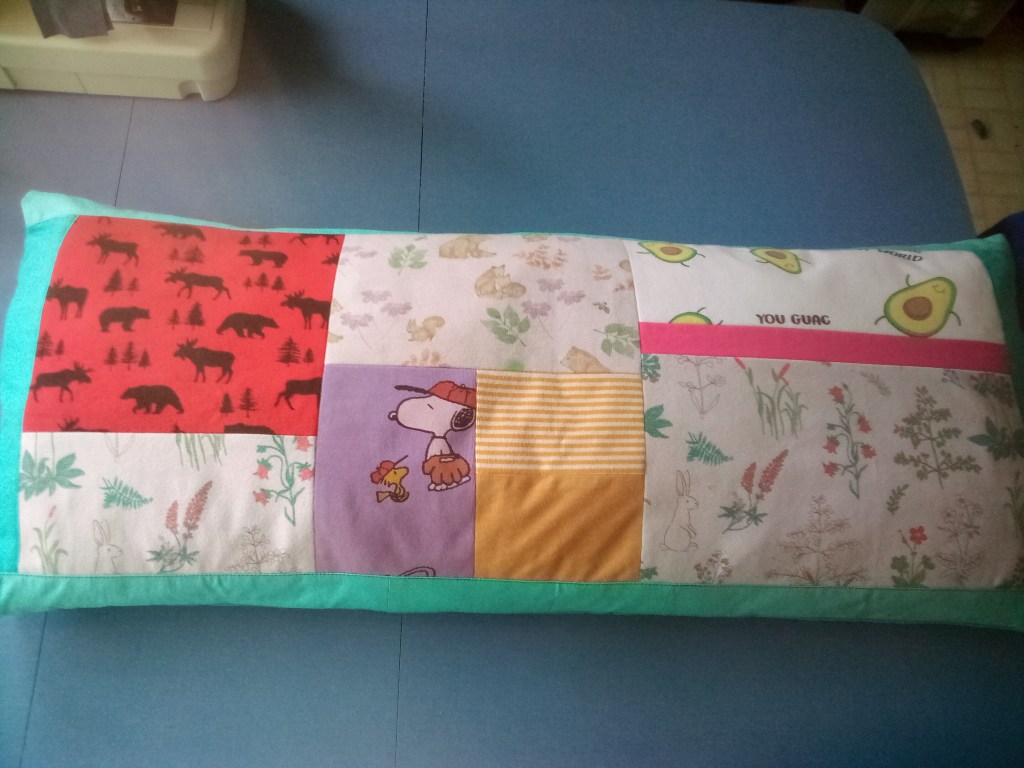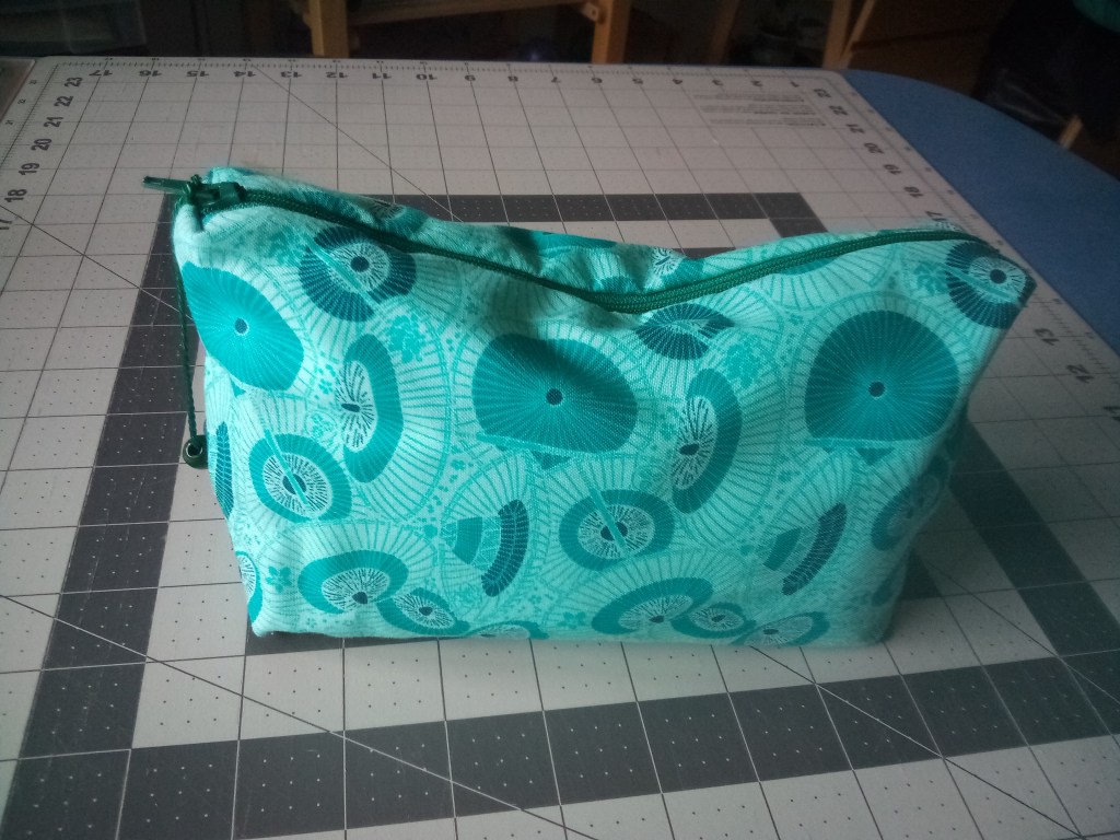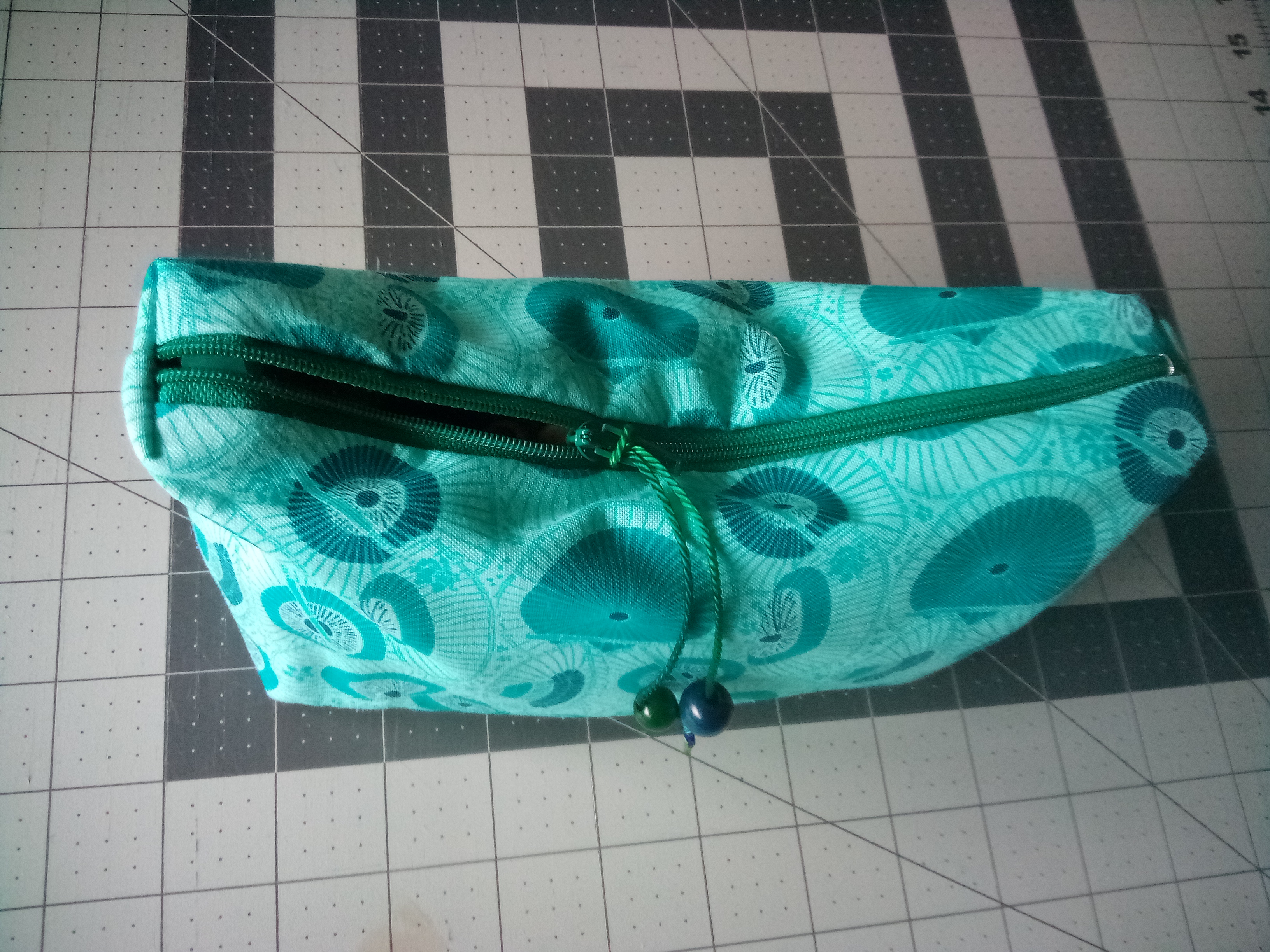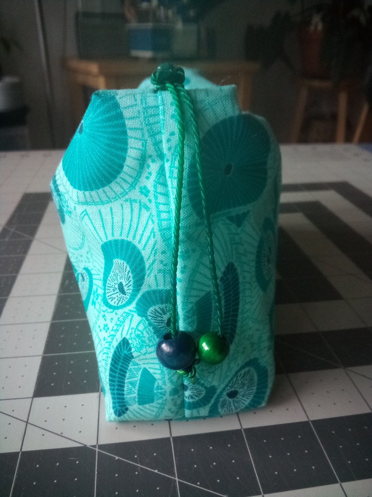 I used a printed cotton for the lining, and “D” rings on the straps. There is a large pocket on the lining, and a decorative, but practical one on the outside.