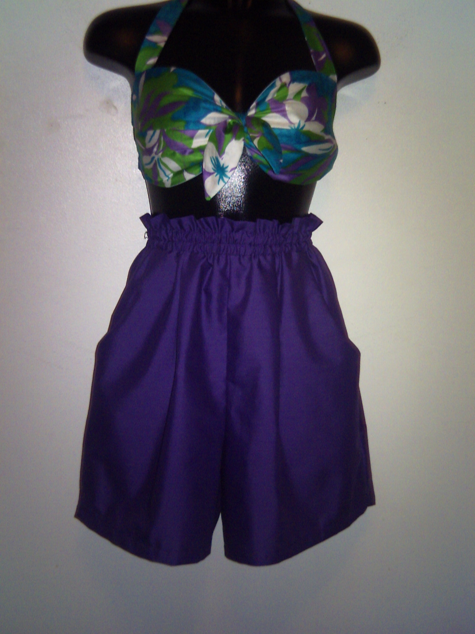 If you interested in the shorts, or colorful bra type top, they are for sale. You can contact me, and we can discuss it. Thanks.