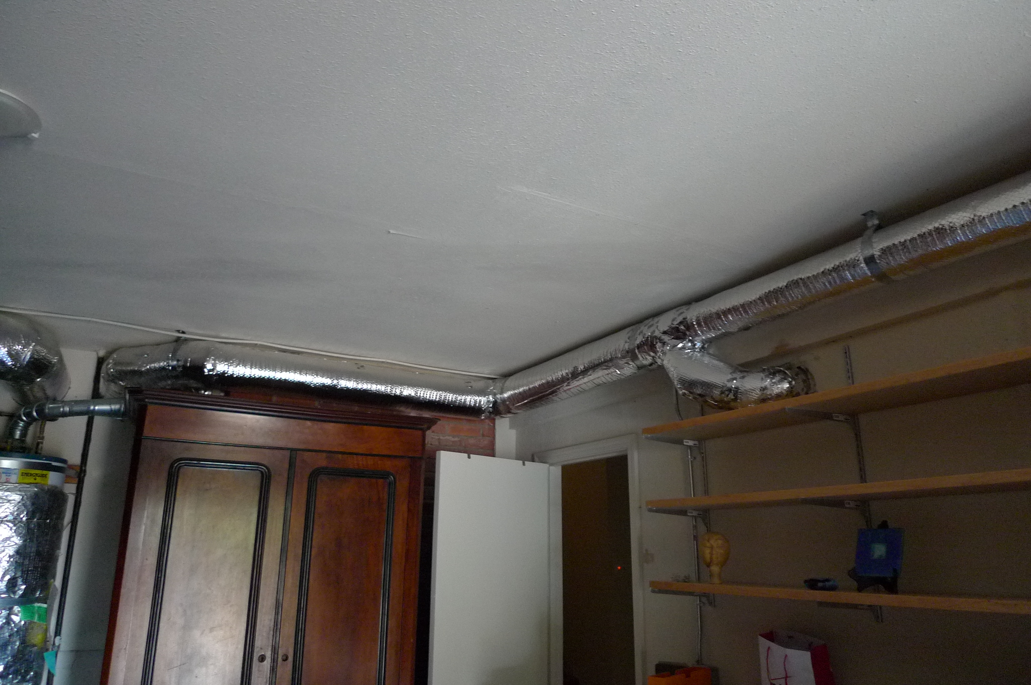 I received an email today, asking me if I could make a curtain to cover heating ducts in a garage. I responded with a “yes”, and a quote. I then was asked to come to the residence, and check out the “complete” project. I ran up the hill, and was surprised at the scale of the project. I chatted with the customer for some time. We exchanged ideas, and I agreed to do the job. Raised my quote, and told her I would be happy to bring my machines, and any tools I felt I needed to do the job. This one is custom, on location. We agreed to go shopping for fabric the next day. That worked out well. Found some nice, fairly cheap fabric that would fit the bill. Check out some of what I was up against. This one is going to be a challenge, and take some time.