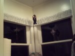day I was thinking more about the kitchen curtain idea, and tada! The sheets came to mind. They are perfect. Stripes, cotton mix and colors that go with everything. One queen size flat sheet made curtains and valances for the whole kitchen. I am very pleased!