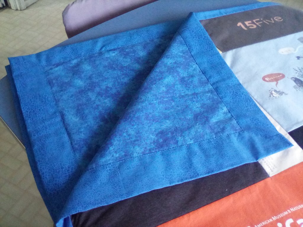 Paul has many t-shirts he wanted spun into a quilt. No problem. Consider it done! I threw in a tote bag just cuz I could. 😉